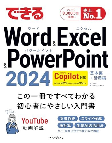 できるWord&Excel&PowerPoint 2024 Copilot対応 Office 2024&Microsoft 365版 Office定番アプリを「使いこなす」ノウハウが凝縮された1冊 「Copilot」でOffice作業をさらに効率化! 対象読者 本書の構成 『できるWord&Excel&PowerPoint 2024 Copilot対応 O…