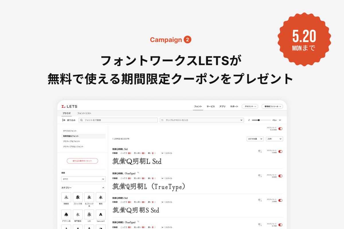キャンペーン2:「フォントワークスLETS」体験キャンペーン