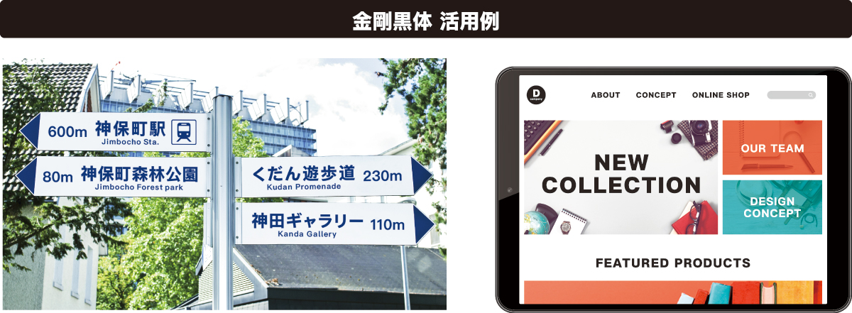 「金剛黒体」は、グローバル化するデジタル環境向けにデザインされたゴシック体フォント。100ヶ国以上の国や地域のデジタルデバイスに対応可能な18言語で展開し、液晶表示での高い視認性、息吹を感じる柔らかな設計、各言語本来の美しさを追求したデザインにより、異なるインターフェースや言語においても人の温もりを以て情報を伝達する。