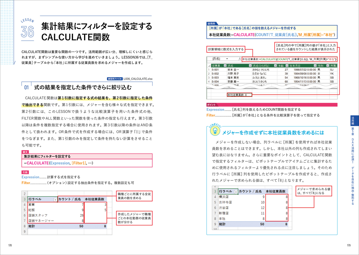 ▼DAX関数の構文とその使用例を見開きで分かりやすく解説