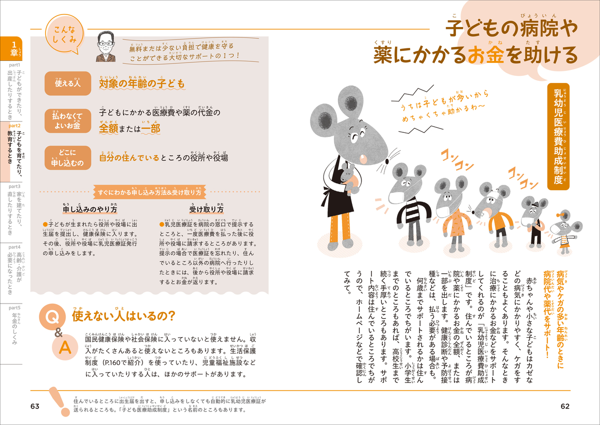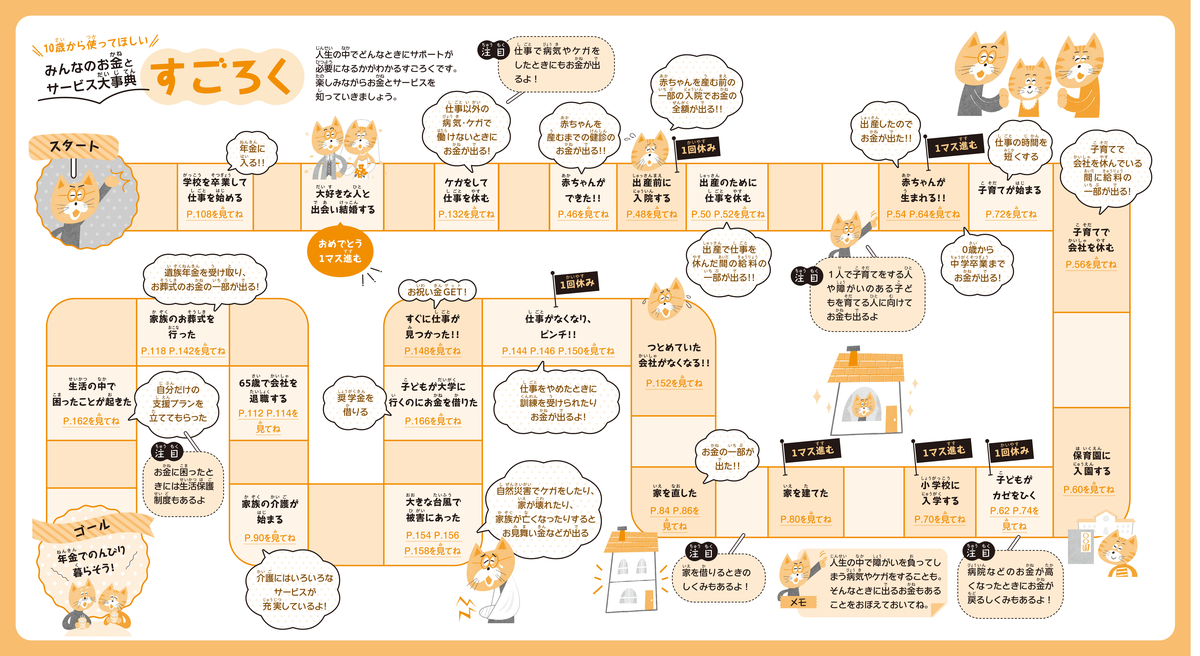 各制度の説明は、出産、進学、住宅のリフォームなど人生のイベント時から、貧乏、病気、障害、災害など不運までカバーされている。