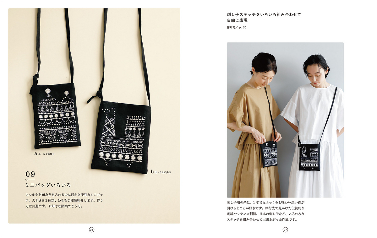 誠文堂新光社は、2024年5月7日(火)に、2022年5月刊「刺し子糸で楽しむ刺繍」の続編で今度は服やバッグ、アクセサリーなど身につけるものを中心に展開した『刺し子ステッチで楽しむ服と小物』を発売した。